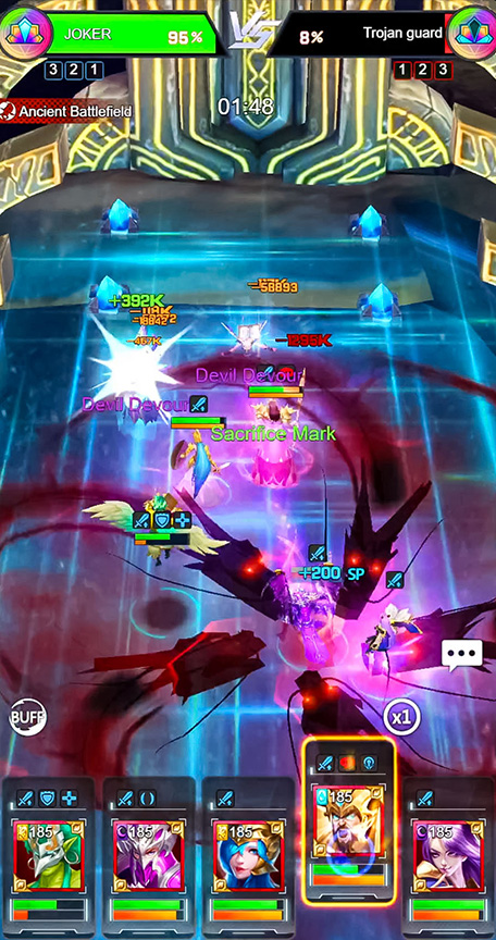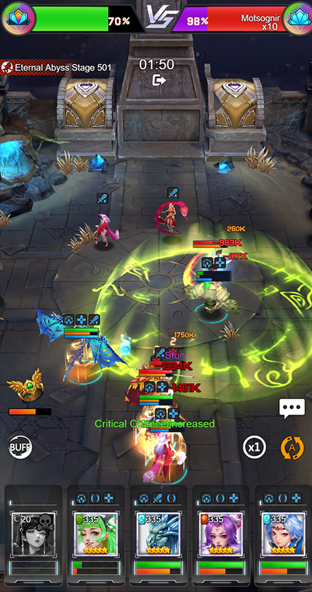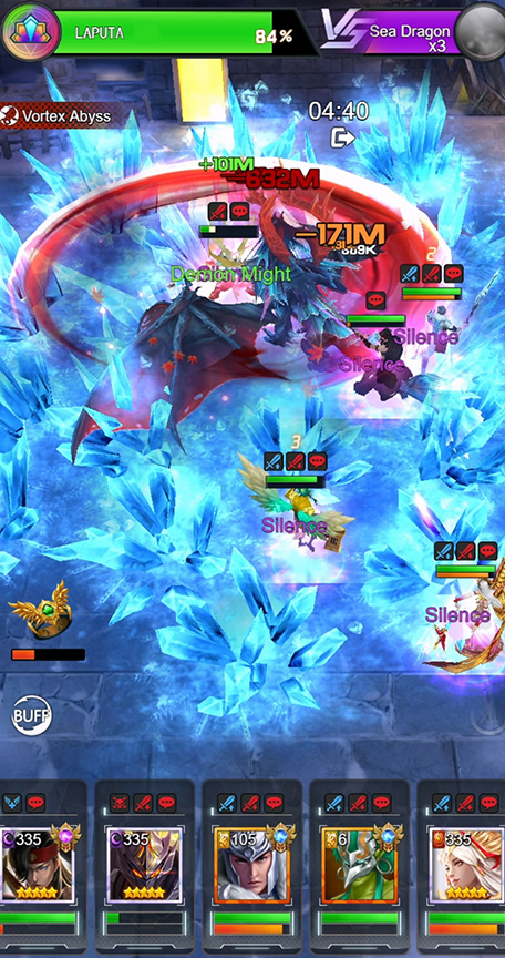 The Dragon Hunt dungeon challenges your courage and skills. You will battle against five powerful dragons: Water Dragon, Fire Dragon, Wood Dragon, Light Dragon, and Dark Dragon, striving for victory in these intense battles. Players can freely combine equipment and skills to create the best battle strategy for their heroes. The heroes' combat abilities will determine whether they can successfully hunt the dragons and become true heroes.